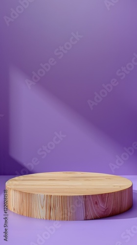 Wooden Round Platform on Purple Background for Product Display