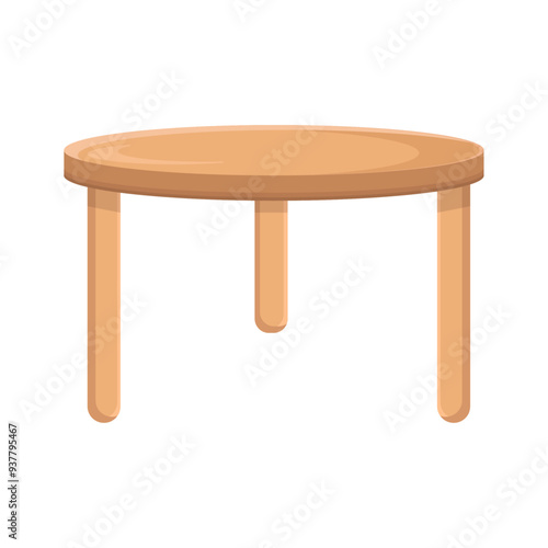 Wooden simple light brown table round desk isolated on white background. Coffee table vector illustration. Rustic furniture with legs for interior design kitchen, cafe, restaurant