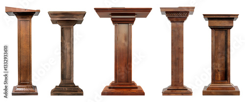 Wooden Speech Desks Set on Transparent Background