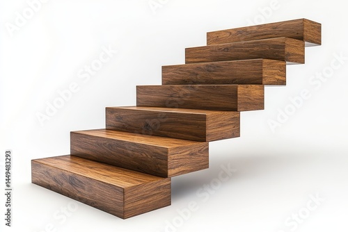 Wooden steps lead upwards on a clean white background. Symbolize growth, progress, and achievement with this image.