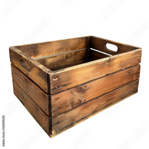 Wooden storage crate with rustic design, ideal for organizing items. Perfect for home decor or as functional storage solution