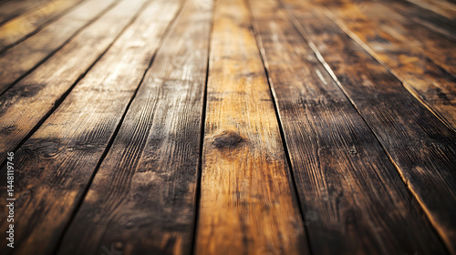 Wooden Texture: A close-up shot of weathered wooden planks reveals a rich interplay of warm tones and intricate textures, suggesting the passage of time and the enduring strength of natural materials.