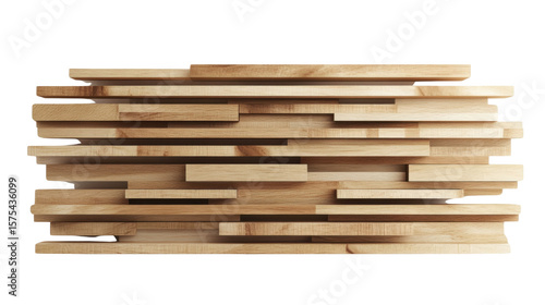 Wooden wall consisting of horizontal planks with natural texture isolated on white background