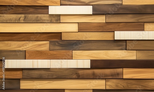 Wooden wall paneling featuring various shades and textures of wood, showcasing natural beauty and craftsmanship