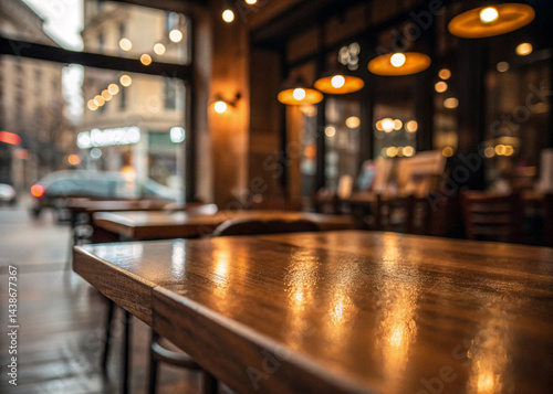 wood-table-top-with-reflect-on-blur-of-lighting-in