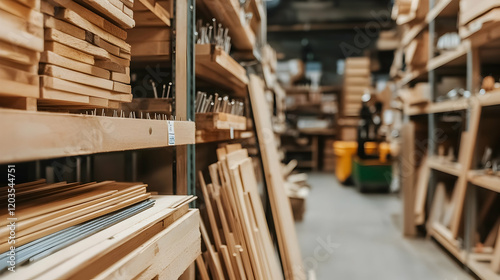 Woodworking store aisle with lumber and hardware, forklift in background; DIY project inspiration