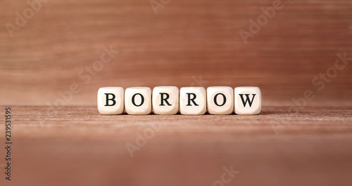Word BORROW made with wood building blocks