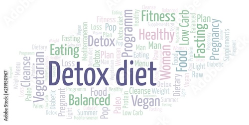 Word cloud with text Detox diet on a white background.