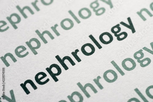 word nephrology printed on paper macro