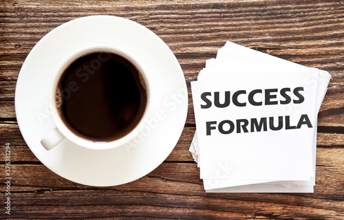 Word writing text SUCCESS FORMULA . Business concept for Urgent Move.Text in stickers with a cap of coffee