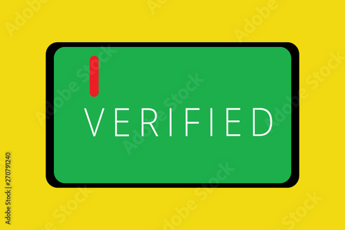 Word writing text Verified. Business concept for make sure or demonstrate something is true accurate or justified Tablet Mobile Smartphone Cellular Device Screen with red linear button