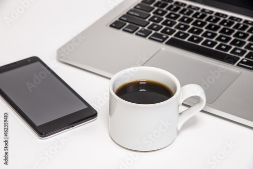 Work desk, smart phone, coffee, personal computer - 仕事場のデスク スマートホン、コーヒー、パソコン1