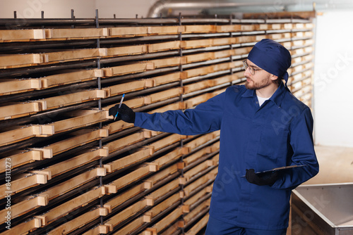 Worker control quality of cedar pine nuts in drying room. Concept Technology in Ecological food industry