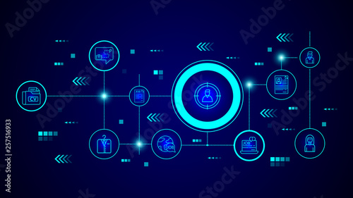 worker in center of sight icon. From interview set