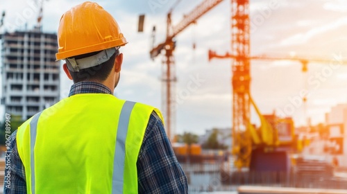 Worker in Reflective Jacket at Construction Site