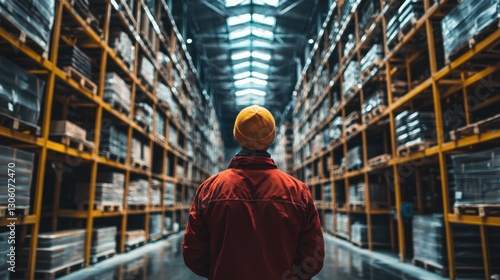 Worker in Warehouse During Daytime with Shelves Full of Boxes