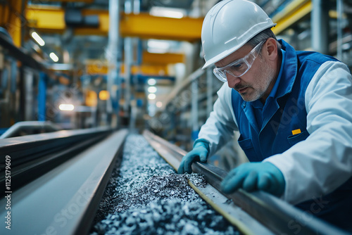 Worker inspecting materials in a manufacturing facility during daylight hours. Generative AI