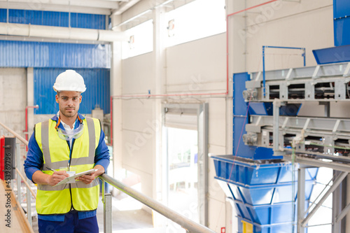 Worker on platform in recycling center