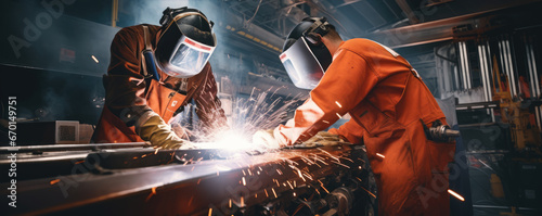 Worker, who work as a metal welder in the airplane factory. generative ai