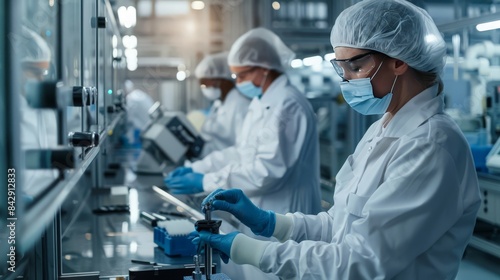 Workers in a production plant meticulously inspect components to maintain the highest quality.
