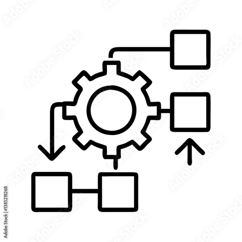 Workflow automation process diagram with gear and arrows for business optimization strategy and flow chart