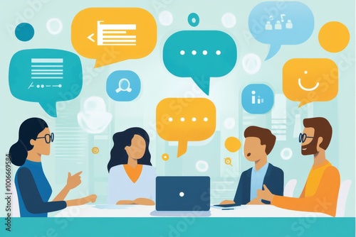 Workplace conversation about new job candidate. Flat cartoon illustration by generative AI.