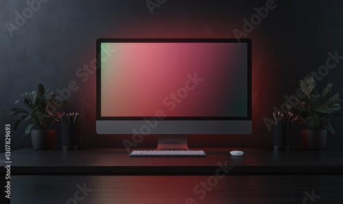 Workspace showcases a sleek computer monitor with a colorful gradient display