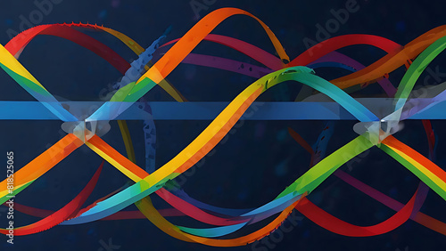 World Autism Awareness Day background with rainbow-colored infinity symbol on blue. Representation of autism, ADHD, neurodiversity -copy space