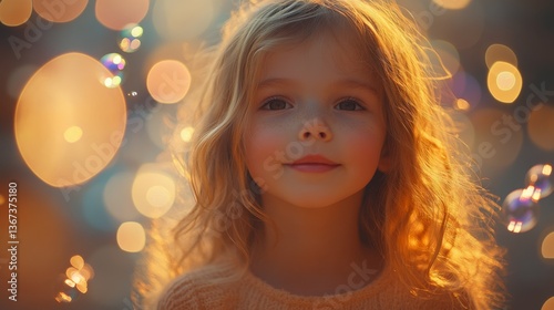World Children's Day theme: A portrait of a joyful girl playing with soap bubbles in the outdoors