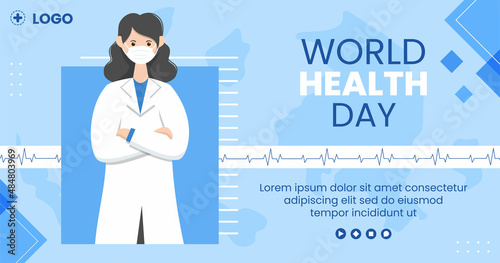 World Health Day Post Template Flat Healthcare Illustration Editable of Square Background Suitable for Social Media or Campaign