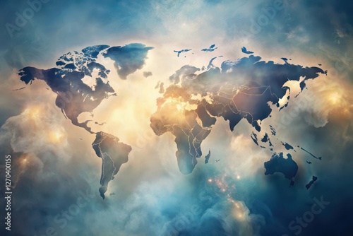 World Map Enveloped in a Dreamlike Celestial Atmosphere A Vision of Global Connection