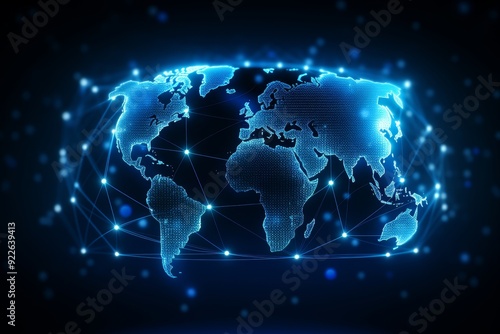 World map overlay with continents interconnected for data transfer in double exposure