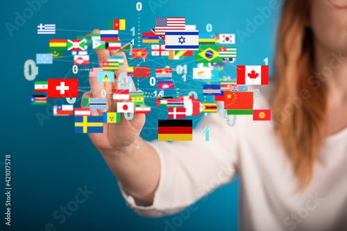 World map with all states and their flags,3d render.