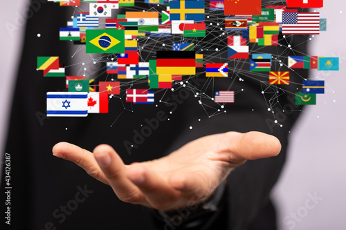 World map with all states and their flags,3d render.