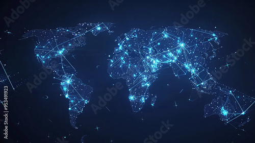 world network global communication, 3d flashing render illustration, international shipping, tech, technology connected points on world map computing and communication connected points, global network