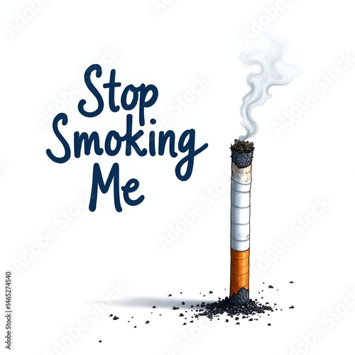 World No Tobacco Day , Stop Smoking Me Message on Cigarette – High-Contrast Anti-Smoking Artwork on Clean White Background