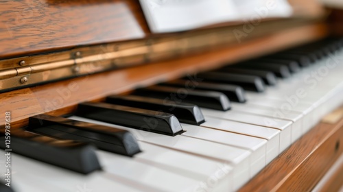 World Piano Day. Open music sheet on piano with warm bokeh lights.