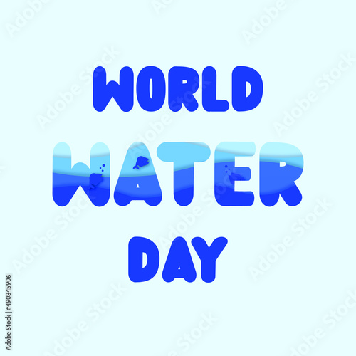 World Water Day Flat Illustration Vector. Save Water. Water Text with Paper Cut Ocean Design