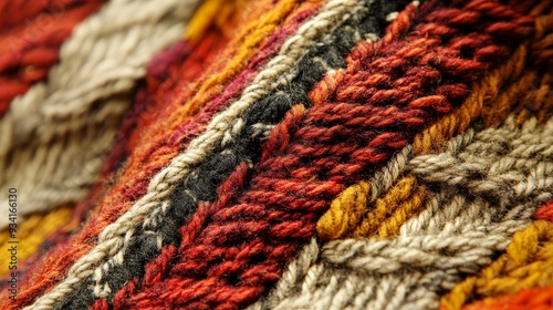 Woven Tapestry Macro, a Close-Up Perspective, Knitted Fabric, Yarn Texture, Colorful Threads, crochet, fiber art