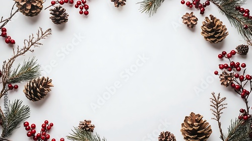 Wreath made of pinecones and berries on a blank white canvas