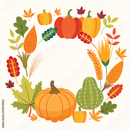 Wreath of pumpkins and autumn foliage fall squash