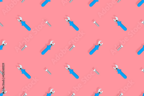 Wrench seamless pattern. Background on the topic of repair or construction.