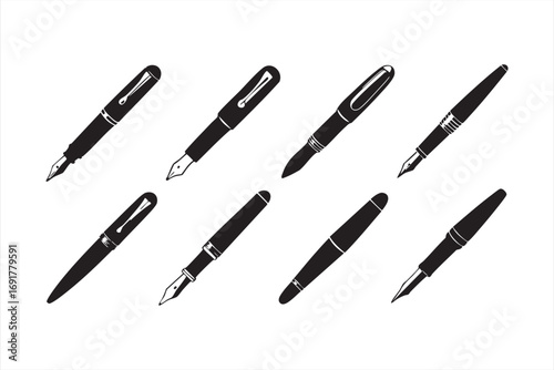 Writing instrument vector pack with fountain pens and ink nibs