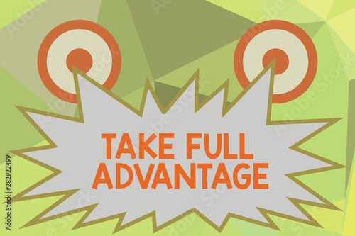 Writing note showing Take Full Advantage. Business photo showcasing Utilize someone or something to the fullest extent.