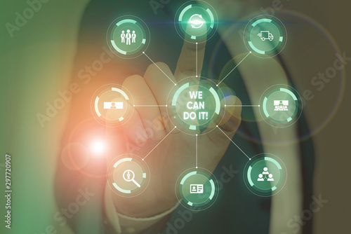 Writing note showing We Can Do It. Business concept for see yourself as powerful capable demonstrating Picture photo system network scheme modern smart device