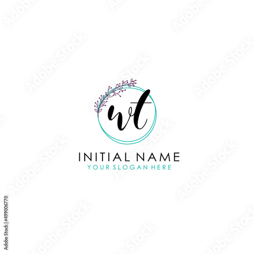 WT Initial letter handwriting and signature logo. Beauty vector initial logo .Fashion boutique floral and botanical