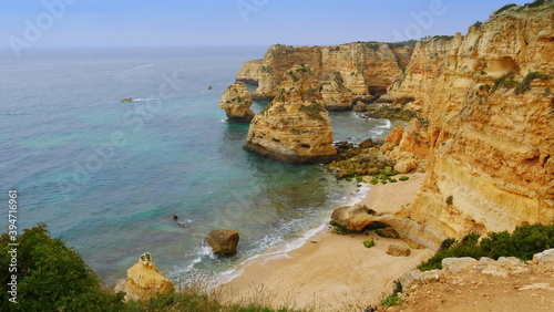 Wunderschöne Badebucht an der Algarve vor einer Felswand