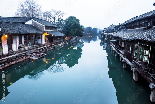 Wuzhen,Tongxiang city,Zhejiang province,Chine. The night view of ancient town,Wuzhen, is a famous historical,cultural and traditional water town.