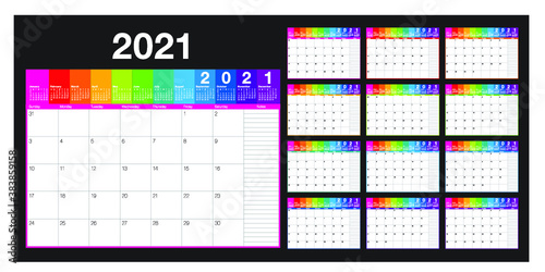 Year 2021 desk calendar vector illustration, simple and clean design.