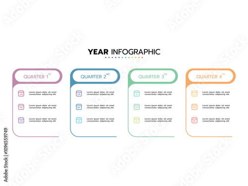 Year planner calendar with 12 months and 4 quarters. Concept business timeline infographics.